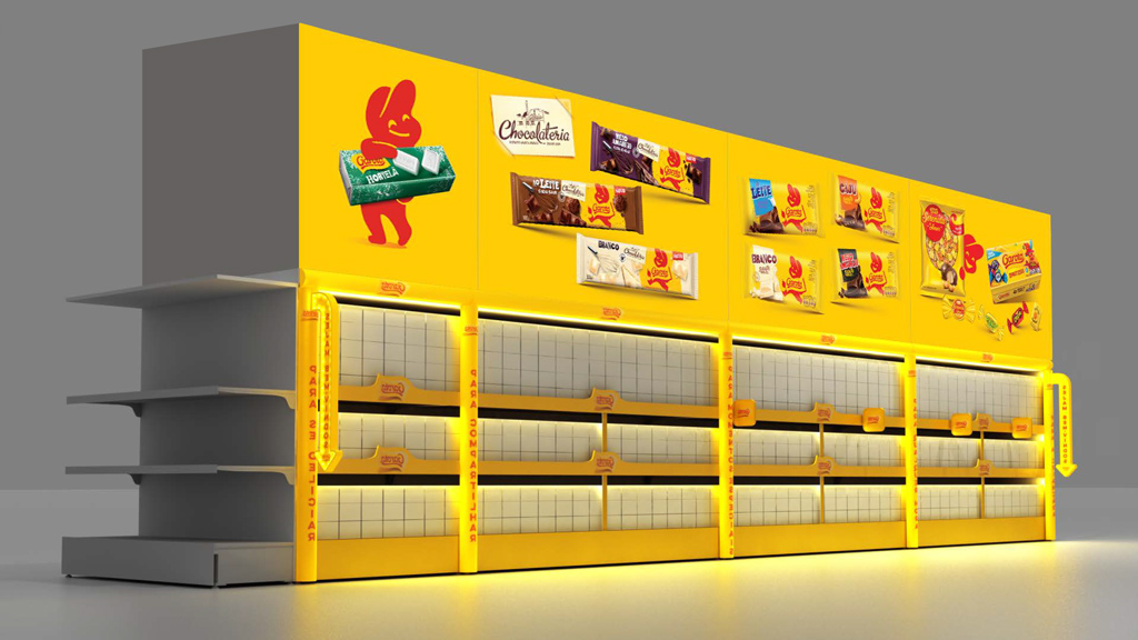 O projeto teve como premissa “vestir” as prateleiras e revitalizar as pontas de gôndola. O objetivo era claro: destacar os produtos Nestlé e Garoto em meio à saturação de informações comum ao PDV. Através de um design inteligente, a ambientação facilitou o gerenciamento de categorias, orientando o consumidor de forma intuitiva e prática.