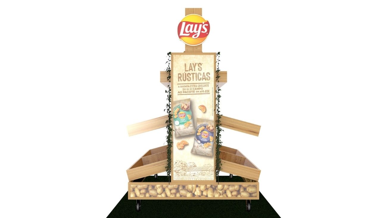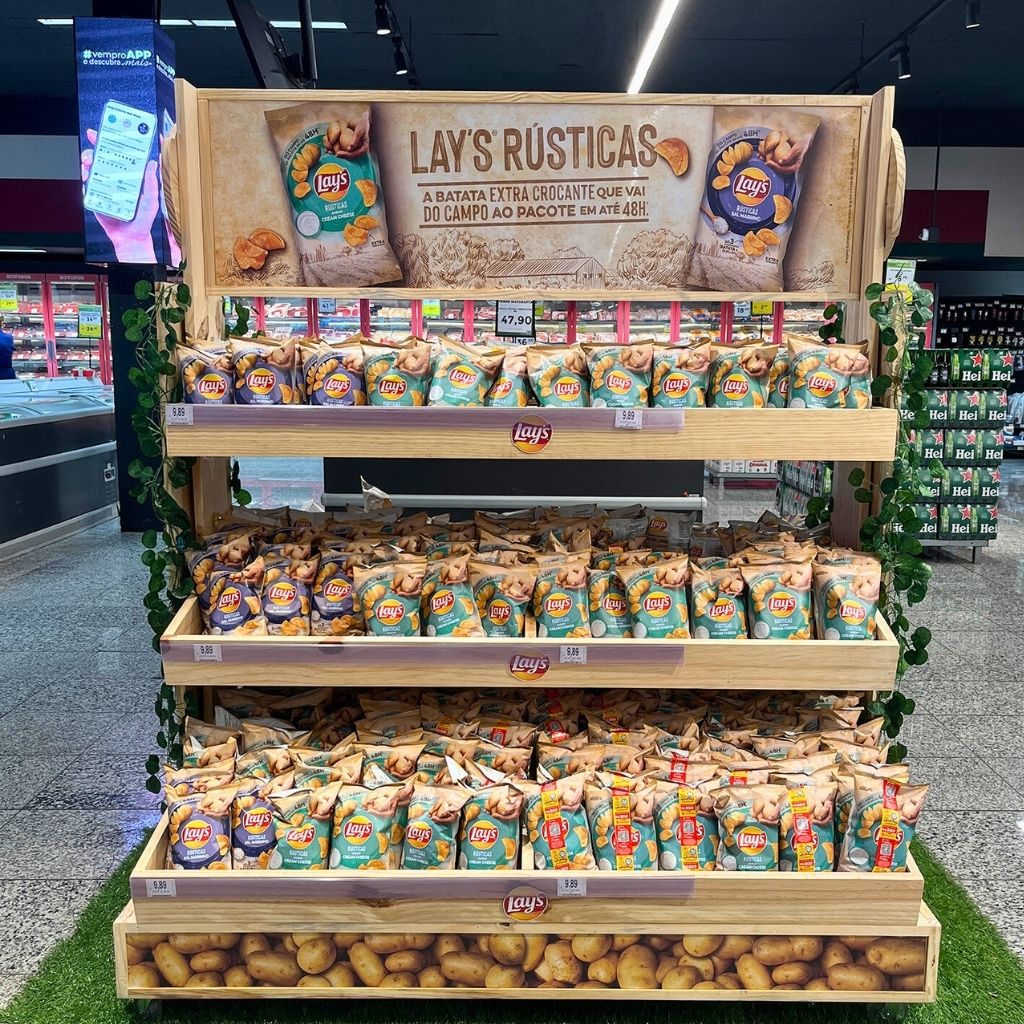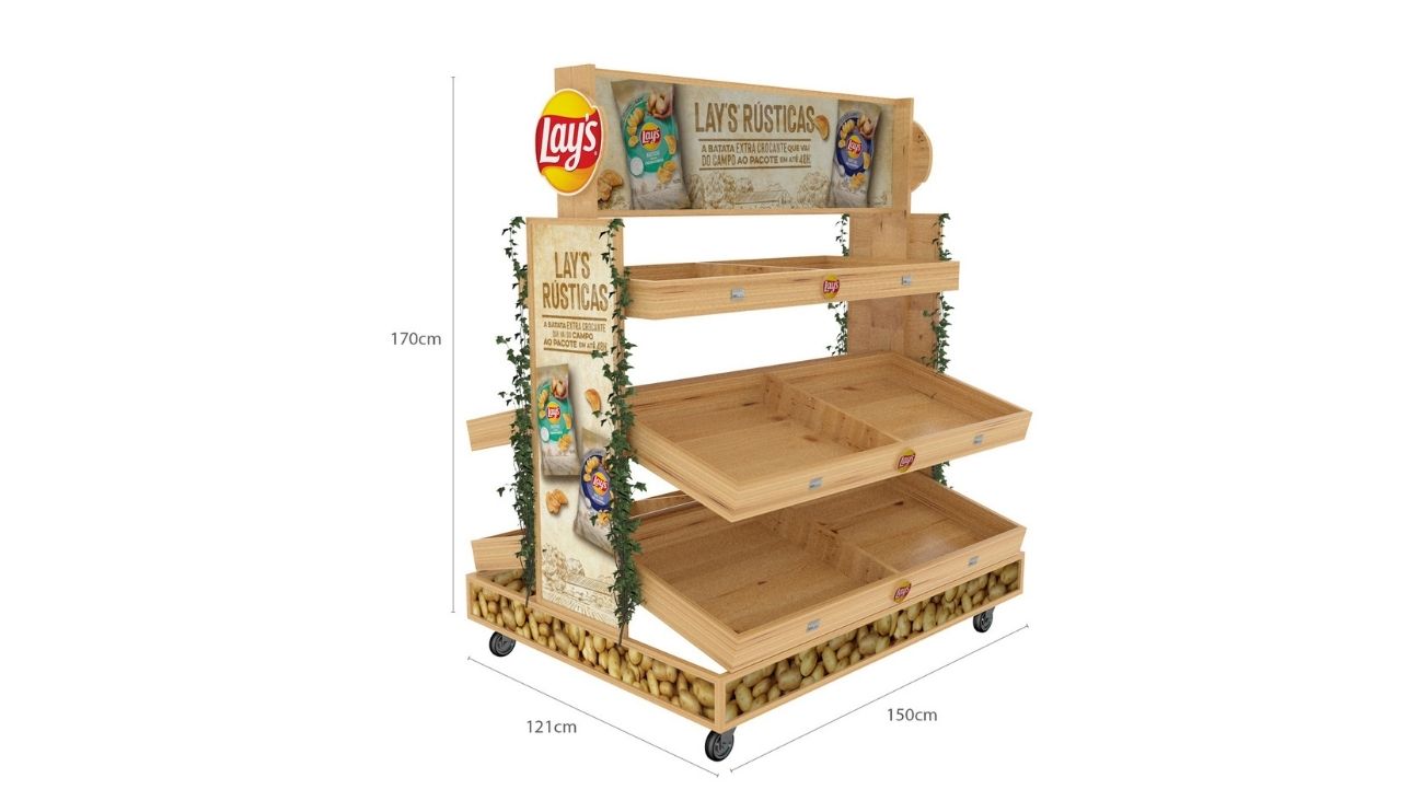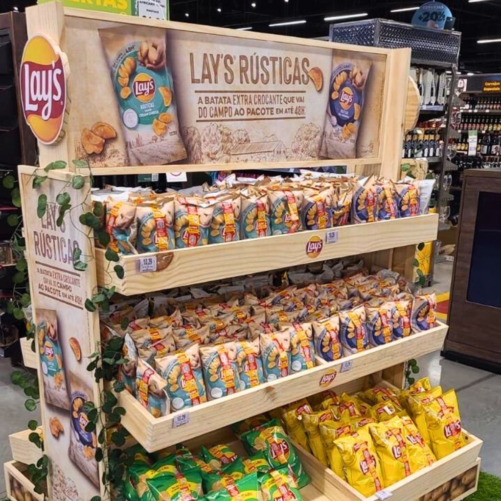 O relançamento de Lay’s Rústicas exigia uma presença de alto impacto no ponto de venda, com instalação em cinco lojas estratégicas do Pão de Açúcar e entrega da primeira unidade no escritório central do GPA, em um prazo reduzido de produção e implementação.